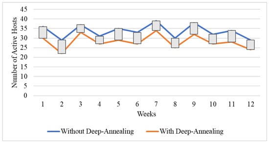 The optimization of energy consumption in cloud data centers has been explored in various studies [21,22,23]. The primary focus of these is to reduce energy consumption by consolidating VMs or activating power-saving modes on underutilized hosts [24]. However, the existing methods primarily focus on reducing the number of active physical hosts without considering the trade-off between resource optimization and maintaining service quality [25]. The proposed RAP-Optimizer not only reduces the number of active hosts by an average of five per day, but it also improves resource utilization, resulting in substantial energy savings without degrading the quality of service (QoS).