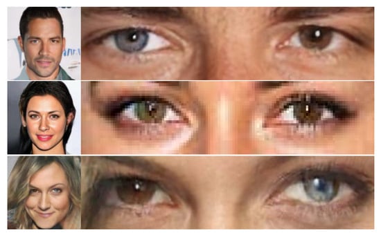 In deep learning, the generation of new faces through image interpolation involves the random selection of data points. Although the resulting images can often be described as qualitatively harmonious blends of different faces, they frequently exhibit a lack of global consistency. A notable example of this inconsistency is the variation in iris colors between the left and right eyes in many generated faces, as illustrated in Figure 5. This phenomenon, known as heterochromia, is quite rare in reality, thereby serving as a useful indicator for distinguishing real faces from generated ones.