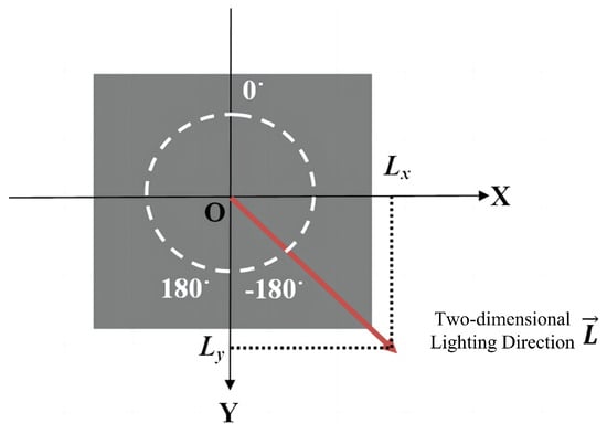 In practical scenarios, the two-dimensional lighting direction is often calculated for images. In this case, we can set the z-component of to zero to obtain the two-dimensional lighting direction vector , which is shown as follows: