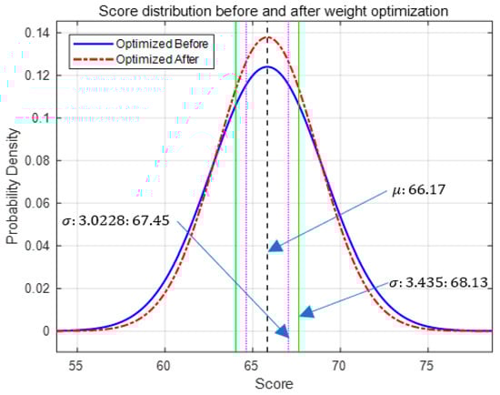 Figure 5 presents the recalculated results compared to the standard deviation of the original evaluation. Prior to optimization, the standard deviation of the evaluation scores was 3.435. After optimization, the standard deviation decreased to 3.0228, showing an approximate 10% improvement in stability.