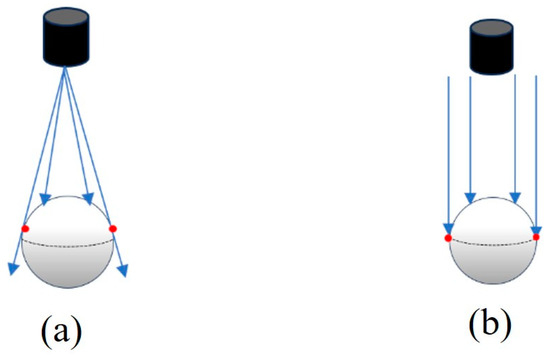Figure 8. Difference between normal and telecentric lenses: (a) normal lens, (b) telecentric lens. - (2)