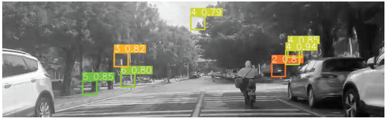 Table 2 summarizes the semantic filter accuracy using YOLOv8 networks and GGCM-E feature-based semantic patches’ information. Notably, the most common labels for the semantic filter are 13, 14, and 15 (five-class filter), respectively, such that the five-class semantic patch ratio is 36.9%. From the calculation in Algorithm 1, the 13–15 labeled semantic patches contain complex texture-rich scenes. We then compare the precision (P), recall (R), and mean average precision (MAP@0.5) on the six classes of semantic patches with respect to the relative semantic filter module. As presented in the results, the average precision, recall, and MAP@0.5 of the six classes based the semantic filter are 77.6%, 76.4%, and 82.4%, respectively.