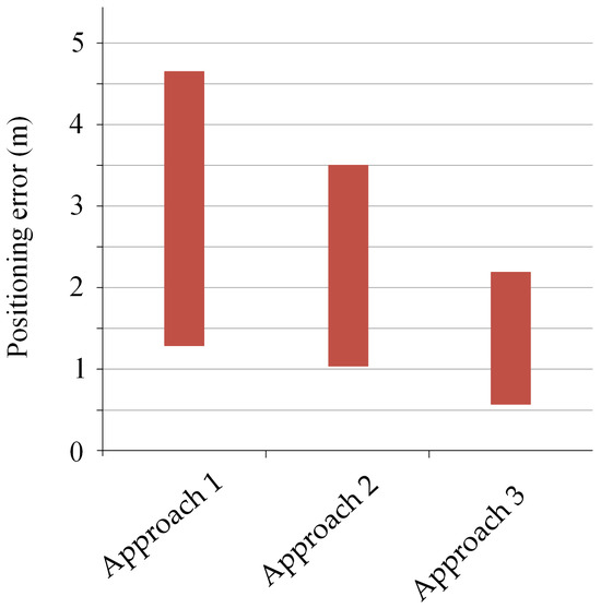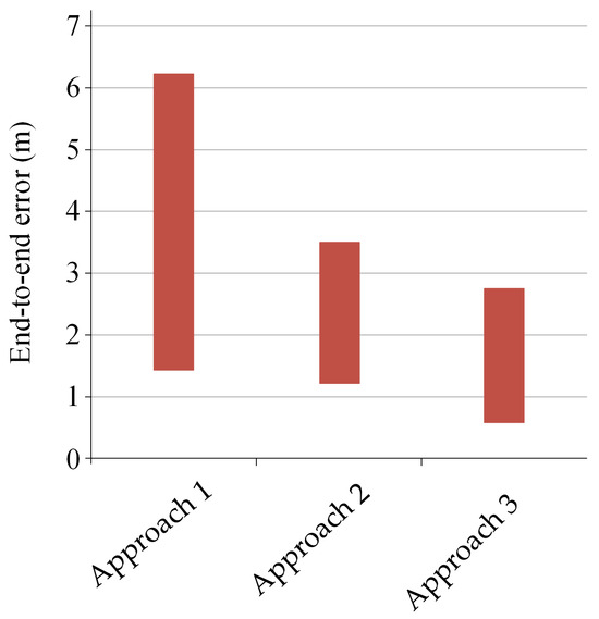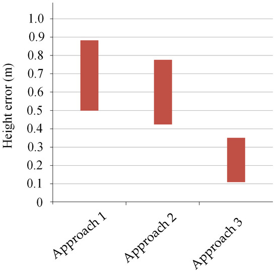 To obtain distance errors, end-to-end errors, and height errors, the results of multiple sets of experiments conducted by multiple people were collated. Figure 10, Figure 11 and Figure 12 show the statistical results. It can be seen that the proposed method had certain advantages in positioning accuracy.