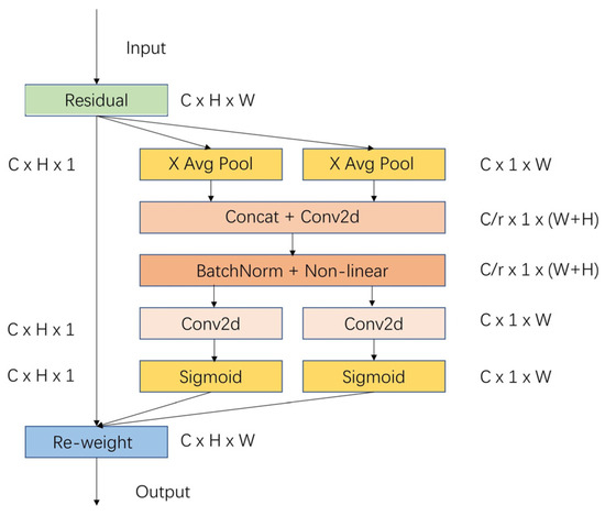 - Hou, Q.; Zhou, D.; Feng, J. Coordinate Attention for Efficient Mobile Network Design. In Proceedings of the 2021 IEEE/CVF Conference on Computer Vision and Pattern Recognition (CVPR), Nashville, TN, USA, 20–25 June 2021; pp. 13708–13717. [Google Scholar]