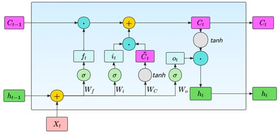 where is the hidden state at time step , representing the model’s memory of the current time step input, is the cell state at time step , storing long-term memory, and is the dimension of the LSTM’s hidden layer.