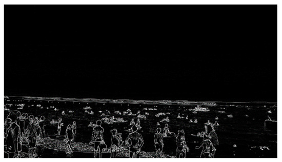 where is the horizontal direction gradient and is the vertical direction gradient; after that, the edge detection results can be obtained by adding the horizontal output results and vertical output results, as shown in Figure 4 and Figure 5.