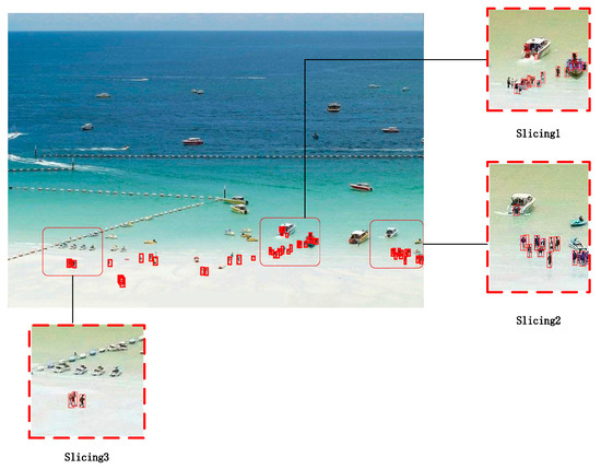 Firstly, unlike traditional one-stage or two-stage detection methods, this framework does not directly input images into the detection network. Instead, it uses a slicing algorithm to divide the entire image into slices containing targets of different scales. Here, the target types included in the final output slices can be changed by adjusting the threshold, including large targets, small targets, and background slices. In this paper, it produces small target slices and abandons background and large target slices to reduce the negative effects caused by noise and an imbalanced data distribution. Afterwards, in order to optimize the feature information of small targets in the slices, an optimized super-resolution enhancement method was adopted to enhance the feature expression ability of the targets without changing the original feature rules, providing a richer information foundation for feature extraction and learning in the backbone network. In addition, this article found that in order to better improve the detection effect, it is necessary to fuse the slice results with the original image detection results for output. However, during this process, the detection boxes of the slice and the original image overlap, causing boundary box disturbance and affecting the detection accuracy. To this end, this article additionally designed an xxx fusion module and proposed an xx Non-Maximum Suppression function for the fusion of slices and original images, which reduces the redundancy of overlapping detection boxes between slices and original images, resulting in better performance compared to traditional NMS.