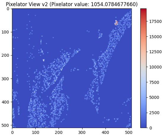 It should be noted that the choice of L1 norm for the Pixelator RGB value in Equation (1) and L2 norm for the Pixelator LAB value in Equation (2) was made based on the distinct characteristics of these colour spaces and the types of differences they are designed to capture. The L1 norm, also known as the Manhattan distance [46,47], is particularly effective for capturing pixel-wise differences in the RGB space where the focus is on intensity changes between individual pixel values. This norm emphasizes pixel-level differences by directly summing the absolute differences, which is appropriate in the RGB space where each channel represents a separate intensity level (red, green, or blue), making L1 a natural fit.
