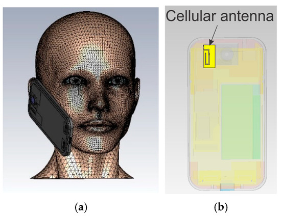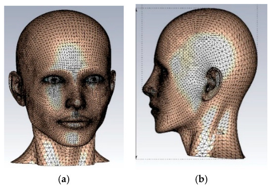 Studies [7,8,9,10,11,12] have previously examined the effects of various implants, such as wires, rods, orthopedic implants, pacemakers, auditory implants, and coronary stents, on the distribution of electromagnetic fields. In these studies, an analysis of RF far-field exposure was performed. Hence, it is not possible to draw any conclusions based on the findings of these studies regarding RF near-field exposure, which is the case when the source of electromagnetic radiation is a mobile phone, positioned near to the user’s head. Virtanen et al. [13] estimated the specific energy absorption rate inside a head with authentic metallic implants exposed to a half-wave dipole antenna. In [14], the influence of a head implant on the absorbed energy distribution is considered, but in the vicinity of the wireless power transfer embedded smart table.
