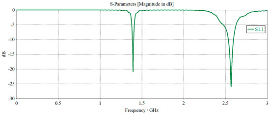 For the purpose of the current investigation, the smartphone as an electromagnetic radiation source, was modeled. A planar inverted F antenna (PIFA) serves as the electromagnetic radiation source. One way of its design and analysis with a MIMO system is proposed in [20]. The PIFA has been modeled for the frequency of 2.6 GHz with the output power of 1 W [21] and an impedance of Z = 50 Ω. The 3D model of a cellphone comprises a housing, camera, battery, display, antenna, and PCB board.