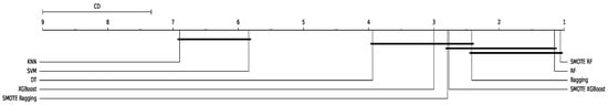 The results show that the combination of SMOTE with ensemble learning methods yields significant improvements compared to other methods, particularly in metrics that are crucial for identifying minority classes. The Nemenyi test confirms that SMOTE-enhanced methods are statistically superior in terms of G-mean, emphasizing their robustness in handling imbalanced datasets.