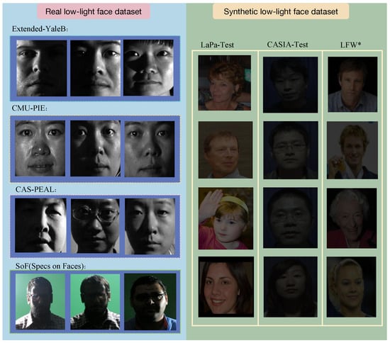 In this section, we introduce a comparison of our model’s recognition performance on low-light face datasets with low-light face recognition methods and some general face recognition methods. We visualize the recognition results of our method and compare them with general face recognition methods. Ablation studies are presented to verify the effectiveness of each module in our model.