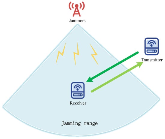 As illustrated in Figure 1, the wireless communication system comprises a transmitter and a receiver with the capacity to adaptively adjust the transmit power, with a maximum transmit power within a specified constraint. The transmission channel between the transmitter and the receiver is within the interference range of the jammer, which is capable of completely covering the receiver. Wireless communication systems are susceptible to sudden and unidentified malicious interference during the transmission phase, which can have a significant impact on the reliability of the transmission.