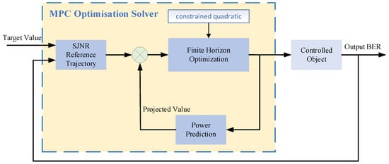 The MPC controller is a model-based optimal control method. The MPC controller calculates the optimal control quantity at any given moment by predicting the future behavior of the system in order to achieve the control objective. The MPC controller is capable of dealing with multiple-input multiple-output problems and control quantity constraints and is therefore suitable for complex network control systems. In wireless communication systems, the MPC controller is capable of predicting and adjusting the transmit power in accordance with the real-time state of the system and the network environment, thereby enabling the system to cope with sudden interference. By dynamically adjusting the transmit power, the MPC controller can ensure the stability and reliability of the communication signals, thus maintaining a stable bit error rate during communication transmission [16].
