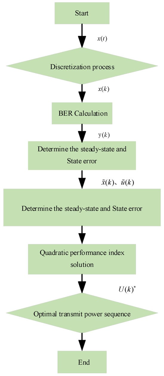 At this juncture, through the derivation, the control problem has been transformed into a standard quadratic programming form, which can be solved using the Quadprog function in MATLAB 2023a. The resulting control sequence represents the optimal transmission power.