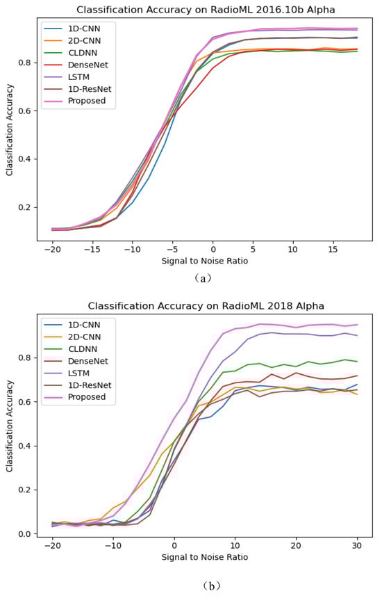 Validation on other datasets: (a) RadioML2016.10B and (b) RadioML2018.01A-sample.
