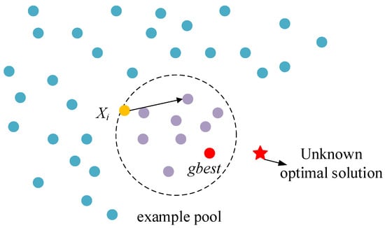 - In the particle updating phase, a social learning mode based on the example pool is implemented to enable particles to learn from better particles, which can maintain the population diversity. Furthermore, multi-point mutation is introduced to enhance the exploration capability of the algorithm.