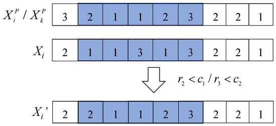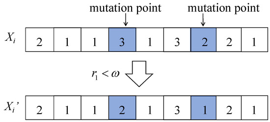 The integer encoding method introduced is able to satisfy the integrity, soundness, and non-redundancy criteria simultaneously [55]. The length of the particle is set to guarantee that each iroute within the panel can be assigned, and the range of the i-th encoding value of the particle includes all possible tracks to which iroute i can be assigned. Therefore, this particle encoding method can cover the entire solution space. For each solution, a unique particle can be found to correspond to it, so that the particles in the range of the encoding space align one-to-one with the track assignment solutions on the panel. This encoding method provides an intuitive representation of the assignment within each panel, offering simplicity in implementation. It can effectively expand the search space compared with the greedy method of NTA, thus improving the performance of the algorithm.