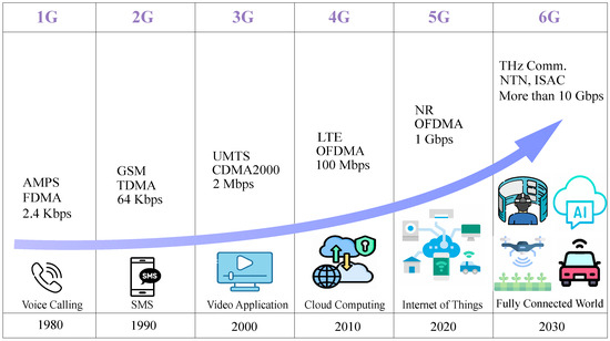 The fifth generation (5G) was commercialized in 2019 and three key usage scenarios of 5G are eMBB, mMTC, and URLLC. To provide much higher data rates and lower latency compared to the previous generations, 5G exploits new frequency bands such as mmWave. Fifth-generation systems also adopt various innovative technologies such as massive MIMO and network slicing. Massive MIMO utilizes a large number of antennas to perform high-precision beamforming and network slicing allows for the customized networks tailored to any key usage scenarios. It is worth noting that the MA technology remains OFDMA; on the other hand, while OFDMA was only used for downlink in 4G, in 5G, it is applied to both uplink and downlink.