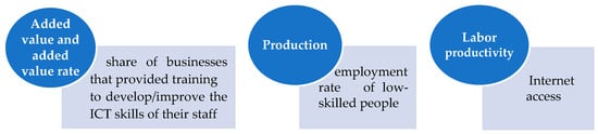 The increase in labor productivity as a result of technical and scientific progress ensures the sustainable development of agriculture. Labor productivity is determined by reporting production per 1000 annual work units. Labor represents an important factor in agricultural production, capitalizing on the operating resources. From an economic point of view, labor remuneration has a high share in the production costs of farms. As independent variables, indicators allowing the assessment of human resources and Internet access and quality were included in the analysis as basic requirements for the implementation of artificial intelligence in agriculture. In an increasingly digitalized world, where conducting business involves highly automated processes to ensure competitiveness, entrepreneurs should become aware of the importance of training and developing digital skills and provide learning opportunities for employees to acquire the necessary skills and knowledge. Due to climate change, crop production is very vulnerable, especially for big crops. To maintain a high level of efficiency, farmers should act very quickly against different diseases or factors that may slow down plant development. AI is able to provide complex data within the technological decision-making process. This requires specific skills of farmers and appropriate qualifications. In this context, the share of enterprises that provided training to develop/improve the ICT skills of their staff was included in the analysis models. The employment rate of low-skilled workers aged 20–64 is specific to agriculture, with frequent part-time work and seasonal jobs. Ensuring upskilling of workers in agriculture under the constraints of the integration of artificial intelligence involves a cumulative effort at the levels of the individual, entrepreneurs, and the state. Career development and a work environment that enhances competence generate significant effects on employee performance. Internet access and its quality are essential in delivering agriculture 4.0. Collecting data, monitoring crops and animals, and optimizing operations in real-time involves the use of the Internet. For these reasons, specific indicators have been included in the analysis models.