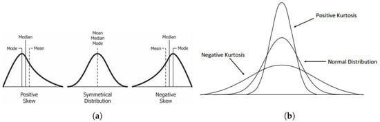 (a) Visualization of positive and negative skewness in time series data []. (b) Comparison between positive and negative kurtosis [].