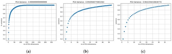 In the confusion matrices shown in Figure 17, it is clear that both models (Figure 17b,c) make fewer overall prediction errors, despite utilizing a 30% augmented dataset and, hence, a larger sample size. Although neither model demonstrated significantly superior performance based on the confusion matrix, the model RF—Wavelets all with a 0.9 correlation filter (Figure 17c,f) is preferable as it implements a dimensionality reduction and only uses 32 features.