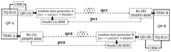 Challenge 2. How to make use of deterministic sources of entangled photons to construct an externally synchronized and unconditionally secure optical fiber network that links several modest quantum processors, referred to here as quantum servers, in a demonstration of cooperative problem-solving. The simplest solution to Challenge 2 requires that classical bits be used to generate qubits so that these can be processed by quantum servers and that qubit states be “interpreted” as classical bits without altering the qubit state, at least within the Heisenberg energy uncertainty. A two- and four-quantum server network is depicted later in Section 3.3, in conjunction with classical DRAM buffer storage.
