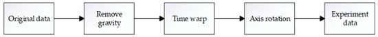 In data processing, the time series of the first 50 waiting sampling points that did not have contrasting characteristics were cropped. Initially, the acceleration data underwent preprocessing to reduce the impact of the Earth’s gravitational field. A technique akin to segmented linear smoothing, known as l1-trend filtering, was employed to adjust for variations in the direction of gravity [36].