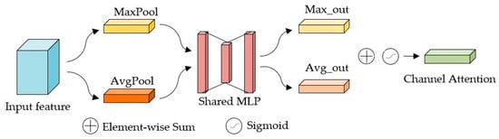 The Channel Attention Mechanism (CAM) was a feature relabeling technique used in deep learning models, especially in Convolutional Neural Networks (CNN) [49]. This mechanism aimed to enhance the model’s ability to capture critical information by learning the importance weights of different feature channels. In the structural diagram of Figure 4, first, a global average pooling operation was applied to the feature map of each channel to compress the spatial dimensions (height and width) of each channel into a single value. This operation could be seen as an aggregation of spatial information for each channel to obtain a global representation. These global representations were then nonlinearly transformed using a fully connected layer (also called a dense layer). Typically, this fully connected layer was first downscaled and then upscaled back to the original number of channels. This was undertaken in order to learn the weights of each channel, i.e., the importance of each channel to the final task. After the fully connected layer, a Sigmoid activation function was used to ensure that the weights of each channel were between 0 and 1. In this way, the model learned the relative importance of each channel.