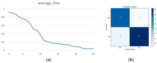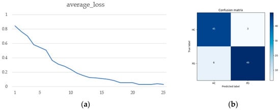 Pd vs. hc: (a) loss function; (b) confusion matrix.
