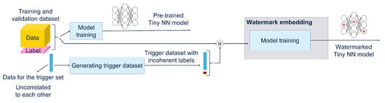 Before delving deeper into the details, the paper is organized as follows: Section 2 describes the background knowledge essential to understanding the watermarking process applied to NNs; Section 3 describes the known approaches in the literature; Section 4 defines the problem this paper addresses with the definition of some requirements to be fulfilled; Section 5 describes the use cases considered for the watermarking application; Section 6 describes the approaches that have been coded to achieve the watermarking of tiny NNs; Section 7 explains the results achieved in this work with the related interpretations; Section 8 shows the results achieved through deployability on the MCU; Section 9 explains the results achieved after some attacks were applied to verify the robustness of the watermarking processes; Section 10 concludes the paper and introduces some future developments about the continuation of the research.