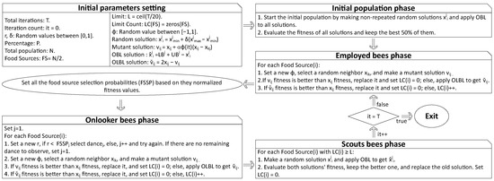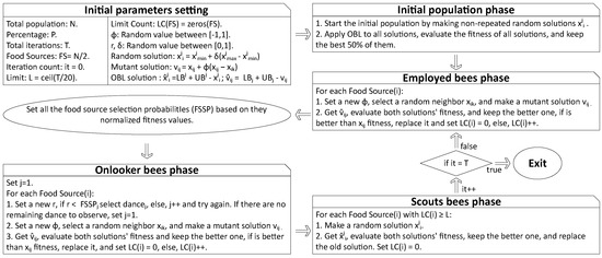 - Zhao, J.; Lv, L.; Sun, H. Artificial bee colony using opposition-based learning. In Proceedings of the Genetic and Evolutionary Computing: Proceeding of the Eighth International Conference on Genetic and Evolutionary Computing, Nanchang, China, 18–20 October 2014; Springer: Berlin/Heidelberg, Germany, 2015; pp. 3–10. [Google Scholar]