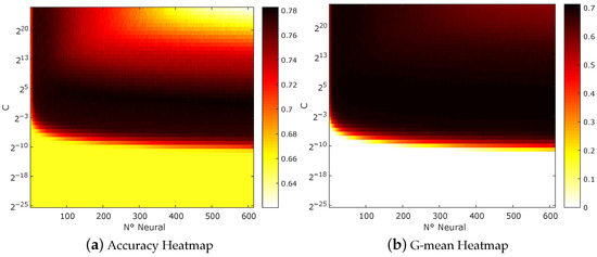 Equation (7) is known as the unweighted regularized ELM. Note that this expression is valid in the case where the number of samples is greater than the number of hidden neurons. There are some variants of the ELM that are used under specific classification problems, such as weighted [36] or semi-supervised ELMs [37]. In this case, we select the regularized ELM since it is a simple network with sufficient good performance to test heuristic-based algorithms for hyper-parameter tuning as the employed in this work.