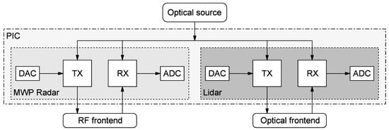 29]. It has been previously demonstrated that it is possible to build radar and lidar cores on a single PIC, thus significantly reducing the required space, power consumption, and transmission coherence issues since both units operate under the same laser source [