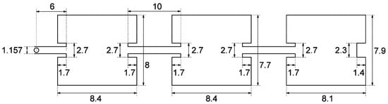 Schematic of a half-patch antenna group, with dimensions in millimeters.