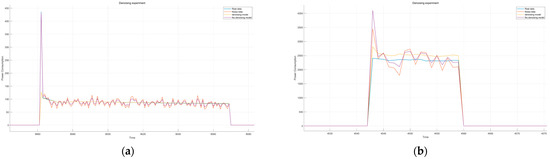We conducted denoising experiments under the interference of transient impulse currents and noise to demonstrate the role of VMD filtering in our model. The experiments which compared our model with VMD included comparison against our model without VMD. The impulse current was added to the power value when a certain appliance was turned on, based on the power characteristics of the dataset. To mimic real-world conditions, noise was chosen to be 50 Hz white noise, and based on the dataset’s sampling frequency, noise values at 1/6 Hz were added to the original data when the appliance was turned on. The experimental results are shown in Figure 7 as follows.