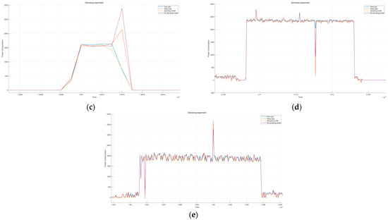 Figure 7. Denoising experiment comparison diagram. (a) Fridge denoising experiment diagram. (b) Kettle denoising experiment diagram. (c) Microwave denoising experiment diagram. (d) Dishwasher denoising experiment diagram. (e) Washer–dryer denoising experiment diagram.