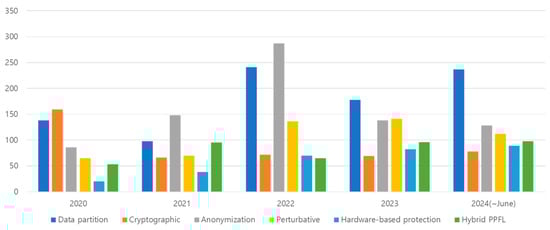 Primary privacy protection mechanisms used in FFL include encryption, anonymization, perturbation, hardware-based protection, and Hybrid PPFL methods. These are similar to the mechanisms of basic FL; however, FFL places greater emphasis on fairness and privacy. Figure 9 shows the various types of privacy-protection methods in the FFL. Personal information protection indicators include pseudonymization and protection.