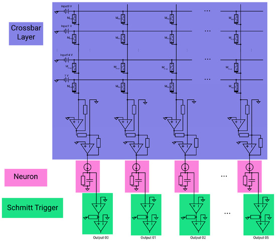- Mladenov, V.; Kirilov, S. A Memristor Neural Network Based on Simple Logarithmic-Sigmoidal Transfer Function with MOS Transistors. Electronics 2024, 13, 893. [Google Scholar] [CrossRef]