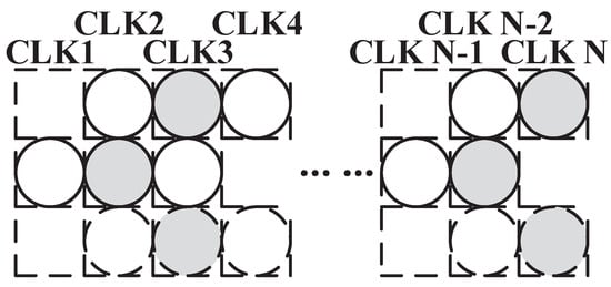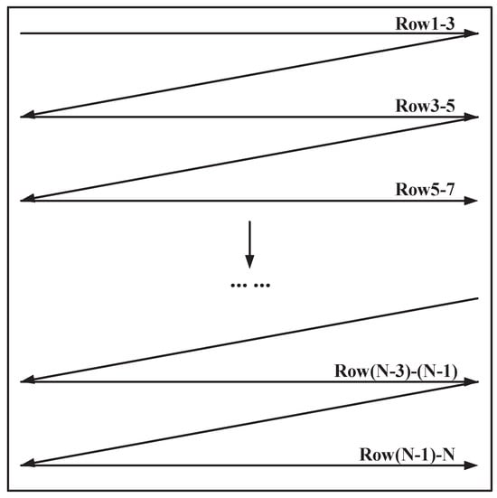 As illustrated in Figure 4, our approach adopts a Z-type pattern for reading image pixels, wherein data from three rows are simultaneously accessed. To ensure the timely arrival of , a staggered data input method is employed, as depicted in Figure 5, where the data of identical color are involved in concurrent operations. Additionally, the final line of data, indicated by a dashed circle in the figure, is subjected to overlap scanning.