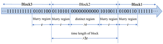 where d represents the one-way delay on the link. Given the presence of blurry regions at both boundaries of each block, the block duration must exceed to ensure a distinct region in the middle of each block. The downstream node identifies each block by recognizing its distinct region, so each block should contain only one distinct region. The duration of the distinct region should exceed that of the blurry region, i.e., exceed t, as shown in Figure 2. Otherwise, spurious distinct regions may appear within the blurry regions, potentially misleading the downstream node in identifying blocks. Based on the above analysis, the upstream node should ensure that the duration of each block exceeds and the packet count of each block is a power of two.