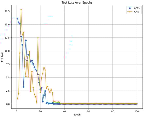 Figure 5 illustrates the loss variation in the AECN and CNN across different epochs. In the initial 20 epochs, the loss of the AECN model decreases rapidly. As the number of epoch increases, the rate of loss reduction gradually slows down and ultimately trends towards 0, indicating the convergence of the AECN model. In contrast, the CNN model demonstrates a slower rate of convergence compared to the AECN model. Furthermore, within the initial 20 epochs, the CNN model exhibits larger fluctuations in loss compared to the AECN model, indicating that the AECN model exhibits superior generalization ability and is capable of demonstrating excellent performance on new data.