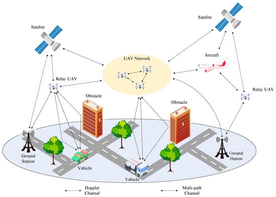 However, frequent relative movements and powerful noise interference are present in highly dynamic UAV networks [], resulting in a fast-fading channel and high-disturbance link, which severely distort receiving signals [] significantly effect communication performance. It is a challenge to determine how to effectively suppress the negative impacts on channel in rapidly time-varying UAV systems, thereby ensuring the coordination between terminals and UAV networking capability.