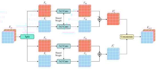 represents complex convolution; and represent two independent ordinary convolutions, where f represents the feature matrix to be processed; and and are the real and imaginary parts extracted from it, respectively. Unlike real-valued convolution, complex-valued convolution exchanges collaborative information between the real and imaginary portions of the data, establishing a connection between the amplitude and phase offsets of the signal, preserving the characteristics of the signal itself, and helping to improve the ability to suppress interference from a new perspective.