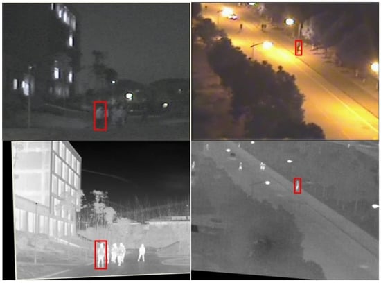 The traditional approach for target tracking typically uses cameras and other equipment to capture visual data of objects. However, relying on a single modality presents challenges in acquiring sufficient information about the object. Specifically, visible light imaging is susceptible to environmental factors such as fluctuations in illumination, rain, smoke, and haze, which can significantly impair image quality. In contrast, infrared imaging is less impacted by these conditions but suffers from lower resolution and reduced textural details []. Furthermore, during thermal crossover, as shown in Figure 1, distinguishing between the target and the background within infrared images becomes difficult. To overcome these limitations, an integrated vision tracker that combines both visible and thermal infrared modalities can exploit their inherent correlation and complementarity. This multimodal approach alleviates the limitations and uncertainties associated with single-modal information, thereby enhancing the reliability of the tracking system [].