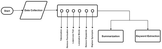 In order to transform an unstructured raw survey data into a meaningful entrepreneurial insight, this research follows a systematic strategy. It employed two distinct NLP models—one for summarization and another for keyword extraction—to progressively transform unstructured survey data into insightful information regarding entrepreneurship. A high-level overview of the study is outlined in Figure 1.