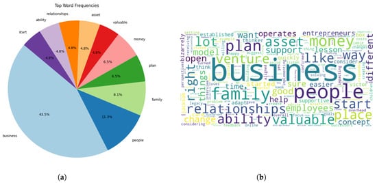Generated pie chart and word cloud from the word frequency. (a) Pie chart. (b) Word cloud.