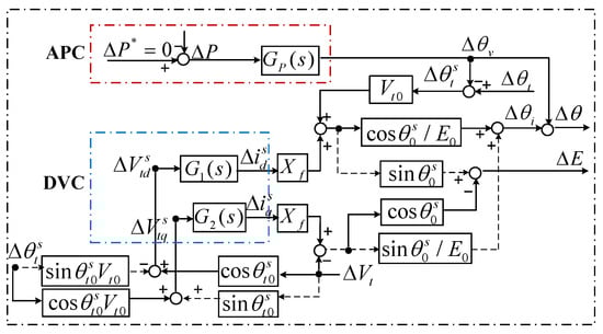 Consequently, the original linearized model of a GFM-WT in APC and DVC joint timescales is obtained as shown in Figure 3.