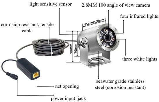In the visual recognition system developed in this study, underwater cameras serve as crucial components, and their selection requires careful consideration of various technical indicators. Given the semi-transparent characteristics of shrimp and the complexities of the underwater environment, it is vital to choose underwater cameras with a high resolution and robust light source control capabilities. When focusing on a specific object or group of objects, adjusting the focal length is crucial for achieving optimal clarity; alternatively, if the shrimp swims beyond the focal range, real-time tracking through an automatic zoom function becomes necessary to minimize image blurriness. Considering these factors, this study selects a variable zoom underwater camera with a resolution of 2 million pixels, 1920 × 1080 P resolution, and a frame rate of 60 FPS. Its supplementary lighting supports both automatic light-sensing control and manual adjustment modes. Additionally, it has a waterproof rating that meets the IP68 standard [15] and can be managed through Hikvision IVMS-4200 (version: 3.3.0) network video surveillance software.
