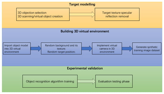 This study is divided into three main phases, as shown in Figure 1: target modelling, 3D virtual environment construction, and experimental validation. Each phase plays a crucial role in the development and validation of the virtual environment.